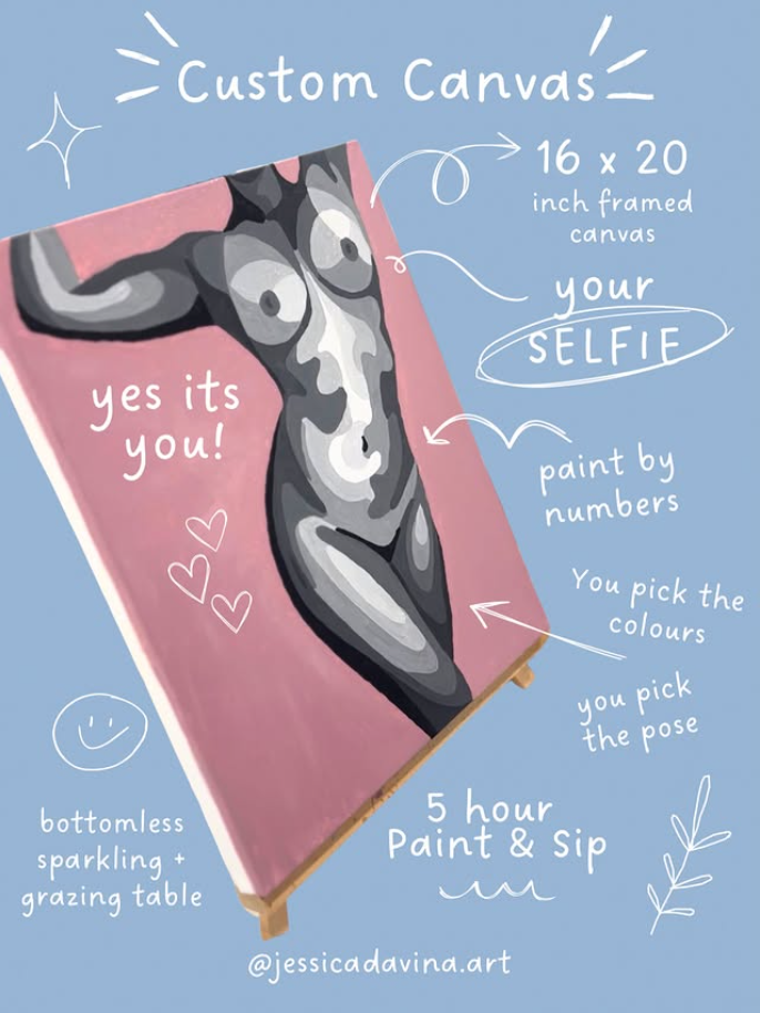 Your selfie is turned into a custom paint by numbers for you to paint and personalize over a 5 hour workshop.