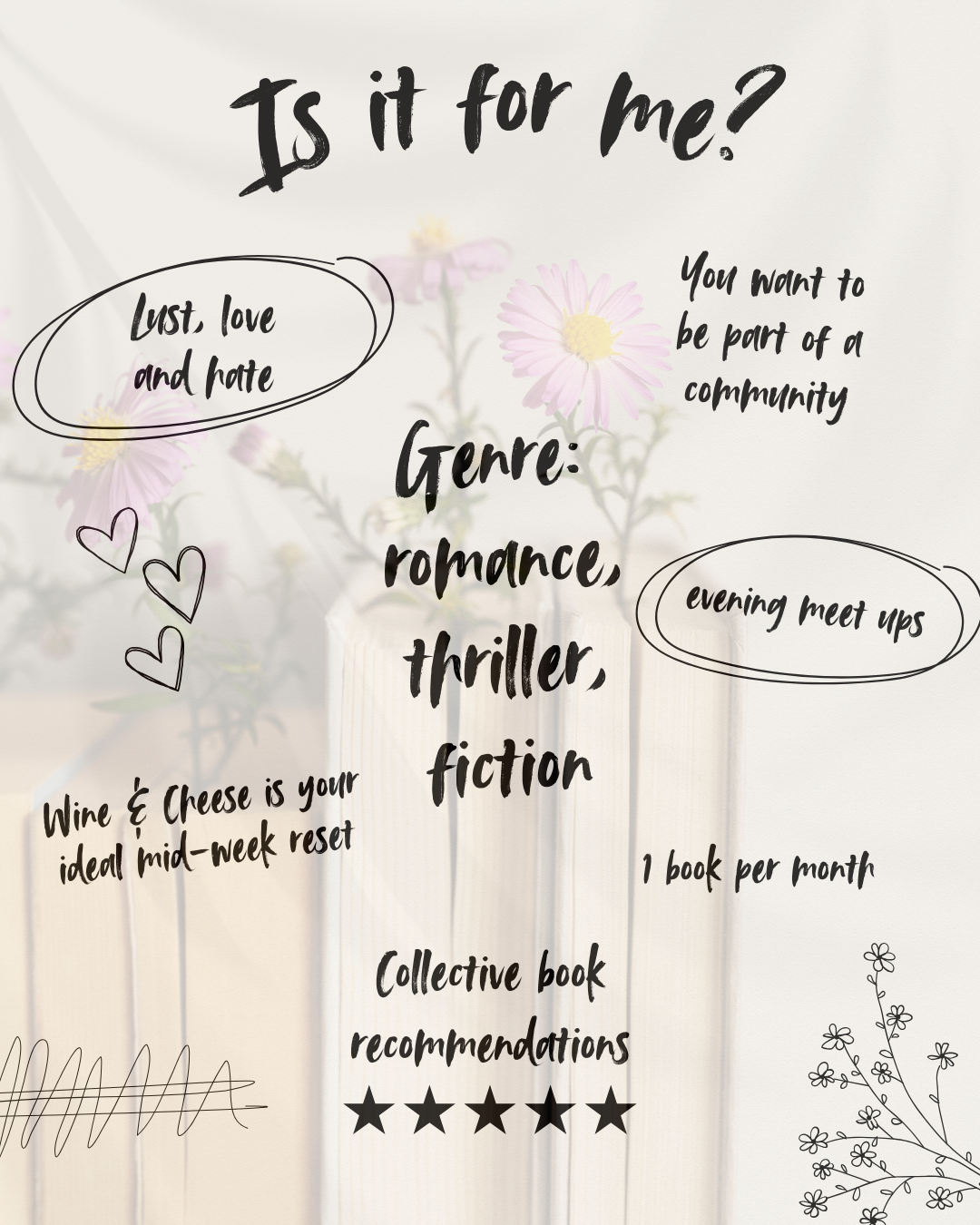 No stress, no rules, just come, sip, nibble, and hang out with other people who love books as much as wine (or maybe even more 😉).